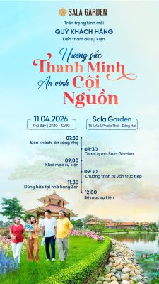 Hoa viên nghĩa trang Sala Garden với thiết kế độc đáo, mang đậm màu sắc văn hóa Á Đông, được xây dựng với tầm nhìn nhân văn và mong muốn đóng góp các giá trị thiết thực cho cộng đồng, Sala Garden mang sứ mệnh lưu giữ và kế thừa, tiếp nối ký ức và tôn vinh giá trị của người đã khuất cho thế hệ tiếp theo. Đó chính là nghĩa cử cao đẹp, phù hợp với truyền thống văn hóa “Uống nước nhớ nguồn” của người Việt Nam.