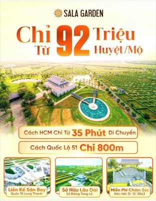 Đây là kênh đầu tư Bất Động Sản đang có nhiều tiềm năng, không rủi ro so với các kênh bất động sản khác. Hơn nữa, trong tình trạng các khu vực thành phố đất khan hiếm và việc di dời các nghĩa trang bắt đầu xúc tiến, cụ thể nghĩa trang Bình Hưng Hòa tại Tphcm. Qua đó việc chọn một nơi an nghỉ tại Sala Garden cho người thân của mình với điều kiện phù hợp về phong thủy cũng như kinh phí là lựa chọn thích hợp nhất.